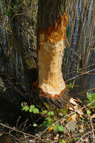 - Kleine Buchten aus Schlamm, die an Ufern auch über größere Entfernungen erkennbar sind. Das sind Biberausstiege.